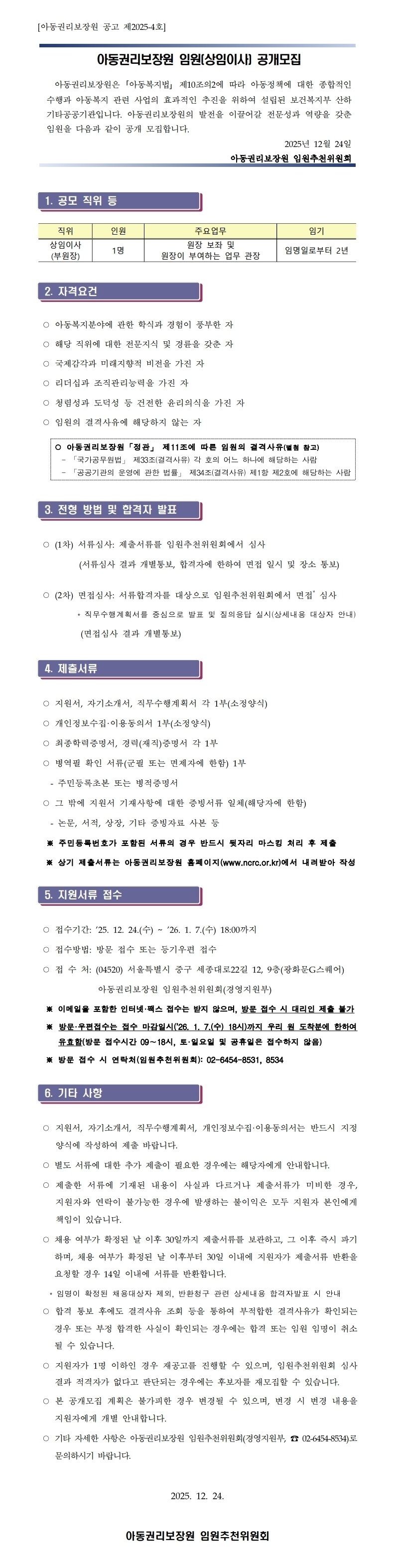 [붙임1] 공고문_아동권리보장원 임원(상임이사) 공개모집(최종).pdf
